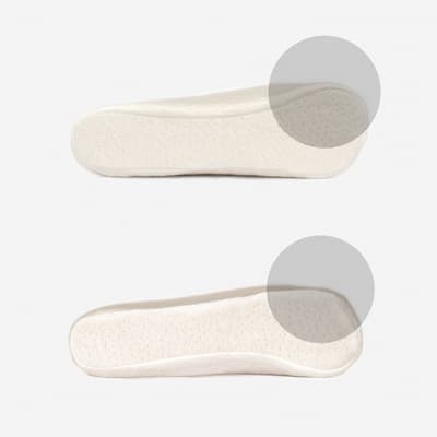 In het midden van het kussen ondersteunt een zachte hoofdsteunzone de rugslaap, terwijl de stevigere randzones de uitlijning van het hoofd behouden voor zijslaap. De groene halvemaanzone op schouderhoogte biedt optimale nekondersteuning met twee verschillende neksteunopties.